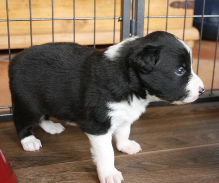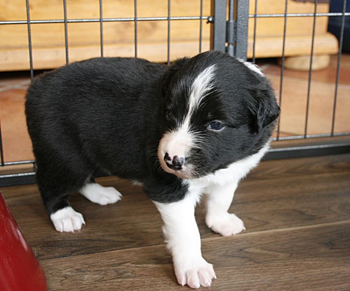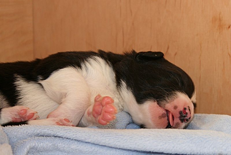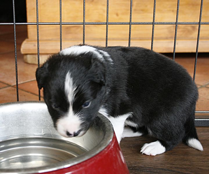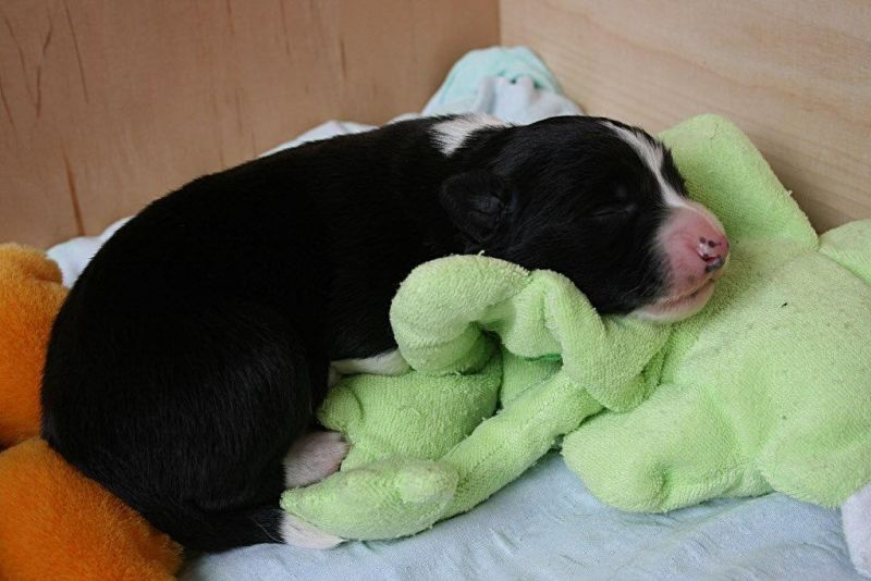 Geboren 06.05.2017, 7.49 Uhr, Rüde, schwarz/weiß, 410 Gramm