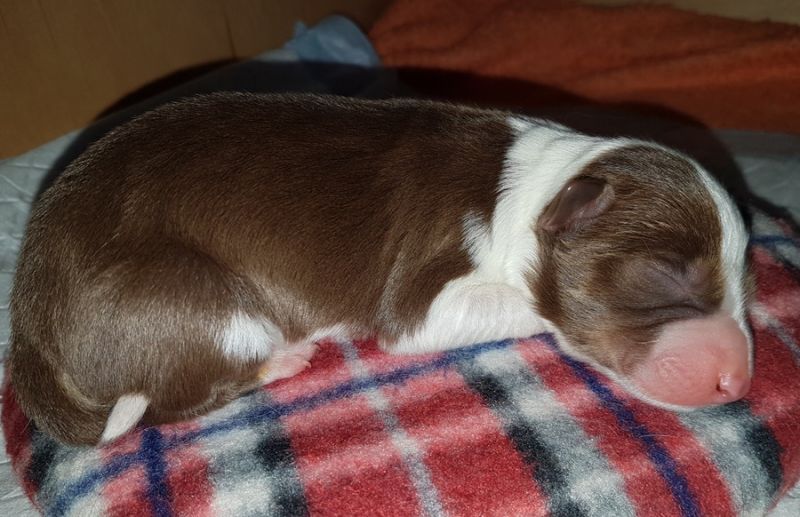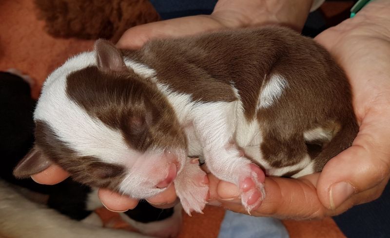 Geboren 28.02.19.2019, 5.10 Uhr, Rüde, red/tricoulor, 252 Gramm, HD A, BH/VT, FCI Obedience Beginner, Ausbildung zum Rettungshund beim THW