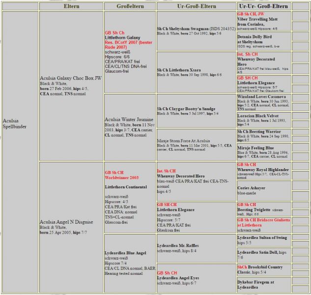 Wurftag: 29.04.2009, Rüde VDH/ZBrH BOC 13827,schwarz-weiß, HD-B1 ED und OCD- frei / MDR1 +/+= frei, DM= N/N, frei von Augenkrankheiten einschließlich Glaucom durch Gonioskopie, Optigen Gen- Test/ CEA : Genotyp normal BH/VT FCI 01 02 03, A1 A2 A3