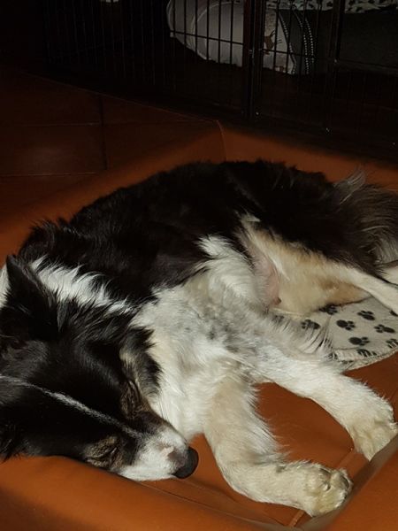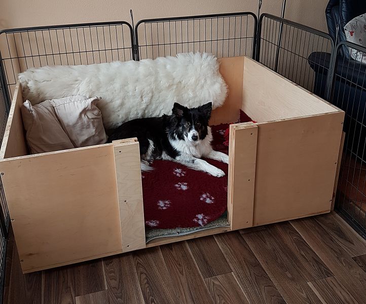Heute haben wir die Wurfkiste aufgebaut und den Welpenbereich abgetrennt. Faith hat die Kiste sofort in Beschlag genommen. Ab sofort kuscheln wir Beide abends viel in der Kiste und ich fühle den Babybauch. Das ist so wunderschön.